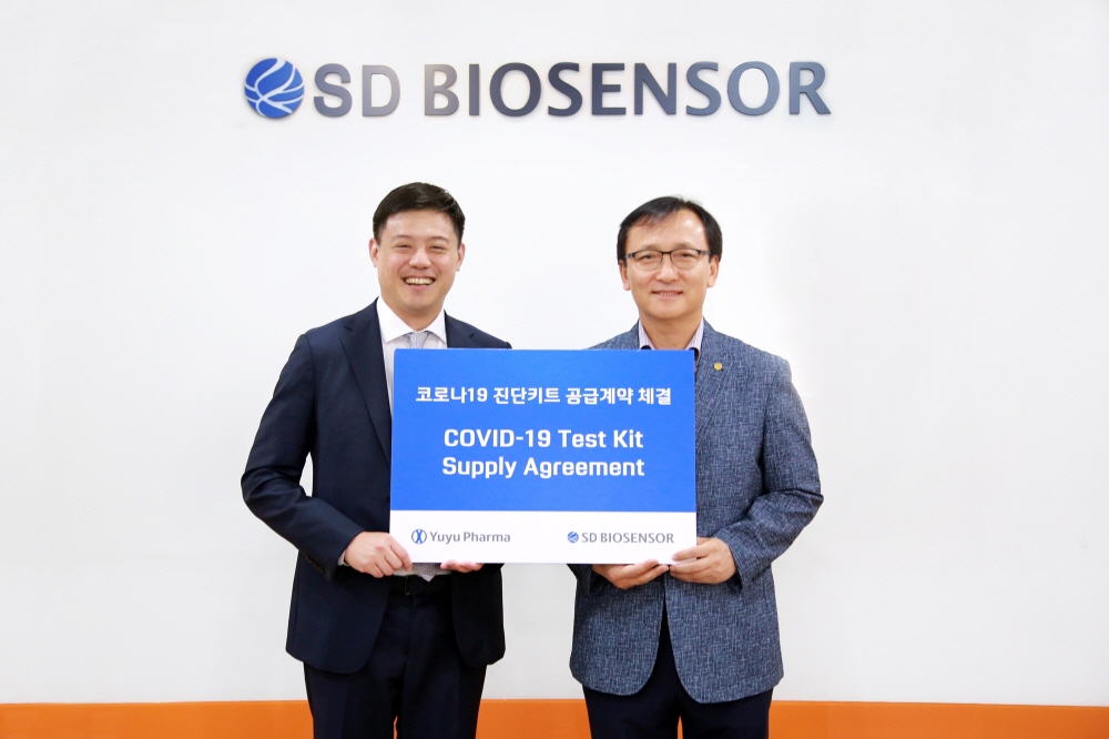 ¡ã À¯À¯Á¦¾à°ú ¿¡½ºµð¹ÙÀÌ¿À¼¾¼°¡ Äڷγª19 Áø´ÜŰƮ Á¦Ç°°ø±Þ °è¾à ü°á½ÄÀ» ÁøÇàÇϰí ÀÖ´Ù. (¿ÞÂʺÎÅÍ)À¯À¯Á¦¾à À¯¿ø»ó ´ëÇ¥ÀÌ»ç, ¿¡½ºµð¹ÙÀÌ¿À¼¾¼ ÀÌÈ¿±Ù »çÀå.