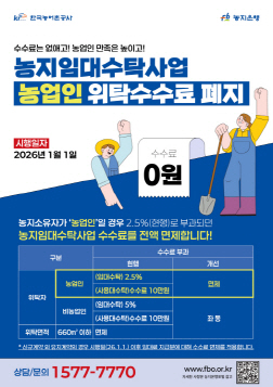 2026³â ºÎÅÍ ³ó¾÷Àο¡ '³óÁöÀÓ´ë¼öŹ»ç¾÷ À§Å¹¼ö¼ö·á' Àü¸é ÆóÁö Æ÷½ºÅÍ. ±èÁÖ¿µ ±âÀÚ