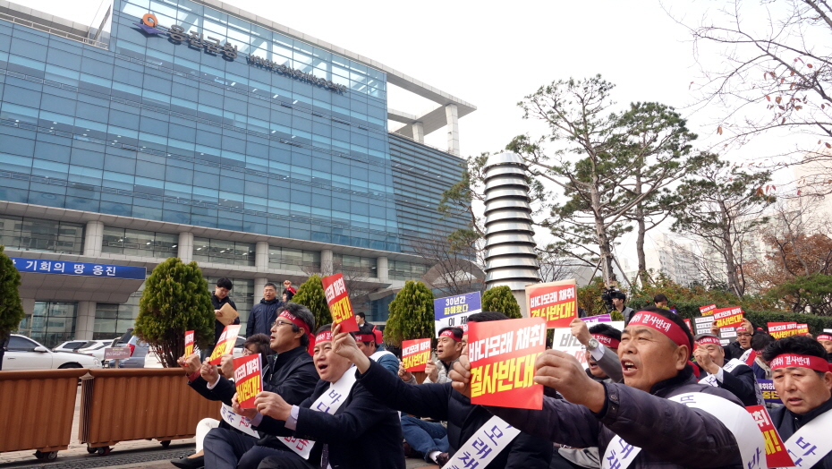 ¿ËÁø±º°ú °ñÀç¾÷ÀÚ°¡ À̹ø ´Þ °øÃ»È¸¸¦ ¿°í ¹Ù´Ù¸ð·¡Ã¤Ãë °ÇàÀ» À§ÇÑ ÀϹæÀûÀÎ ¿òÁ÷ÀÓÀ» º¸ÀÓ¿¡ µû¶ó 19ÀÏ Çѱ¹¼ö»ê»ê¾÷ÃÑ¿¬ÇÕȸ, ¹Ù´Ù¸ð·¡Ã¤Ãë¹Ý´ë ´ëÃ¥À§¿øÈ¸ µîÀÌ ¿ËÁø±ºÃ» ¾Õ¿¡¼ À̰°Àº ÇൿÀ» ´ÜÇàÇß´Ù.